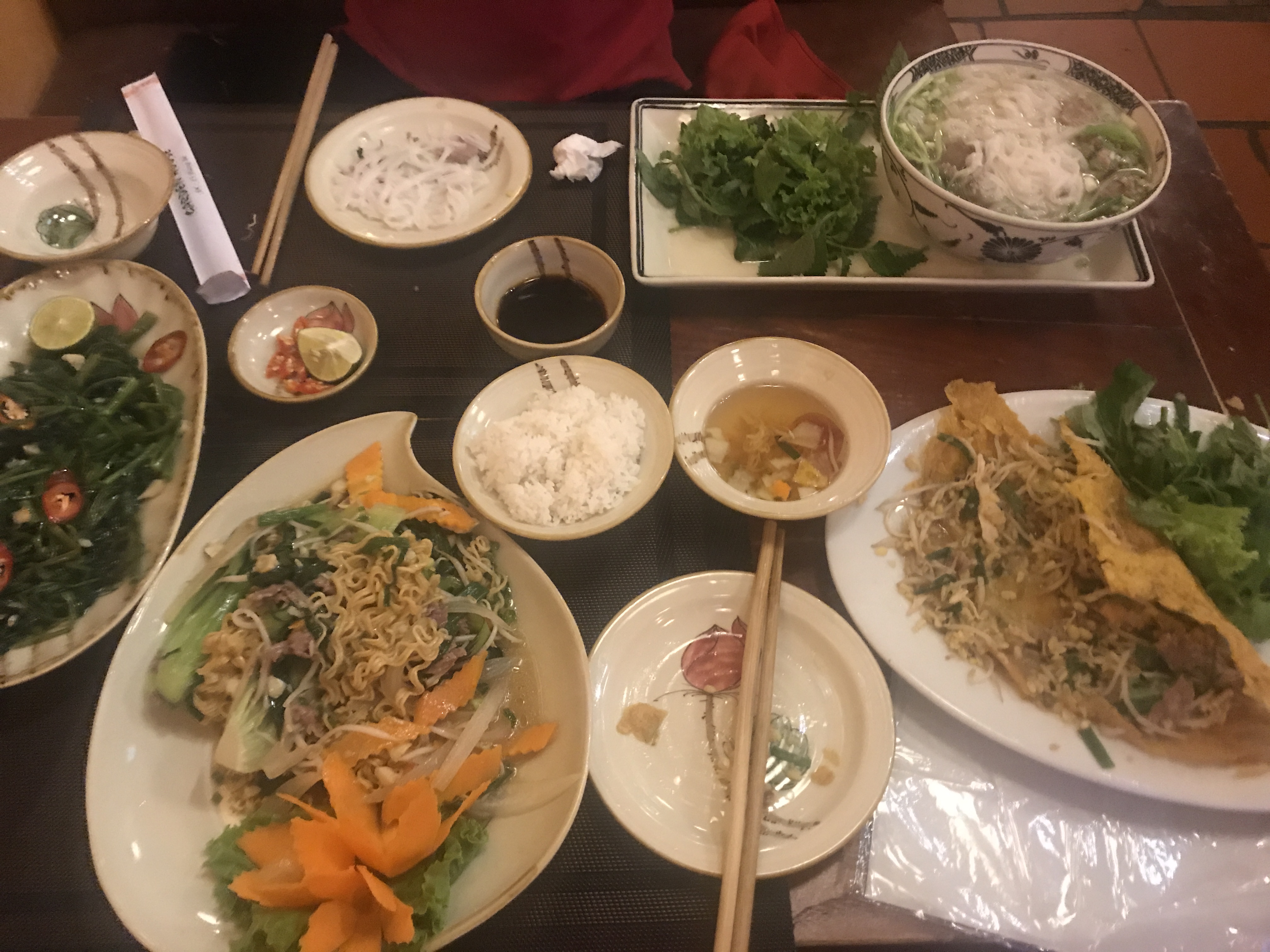 스프링롤, 반세오, 모닝글로리, 볶음누들, 쌀국수 먹었구요.