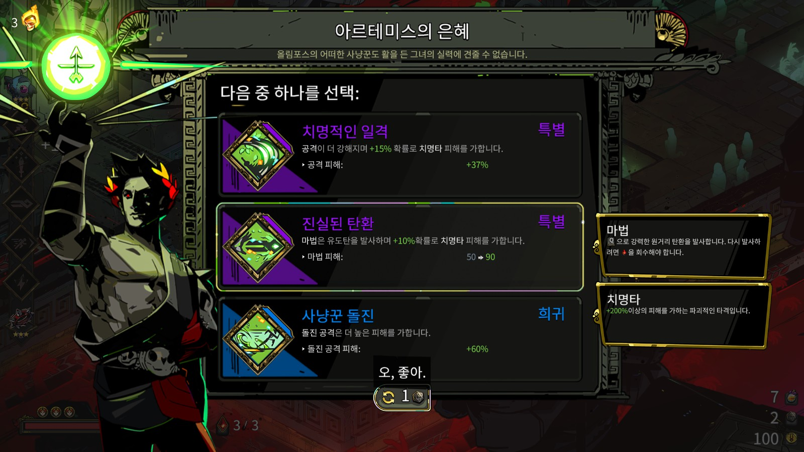 이러한 요소들을 통해 하데스에서는 유저가 게임의 클리어 확률을 아주 조금씩 높여준다.